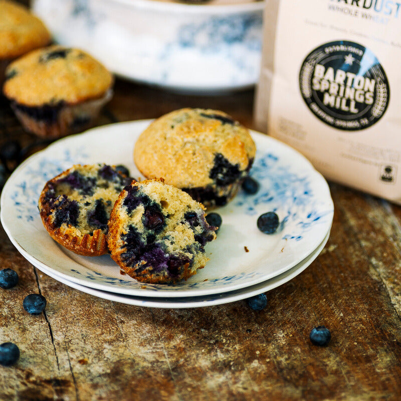 Blueberry Muffins using our organic All-Purpose flour and organic Sonora whole wheat for added nutrition. Great to make ahead and freeze!