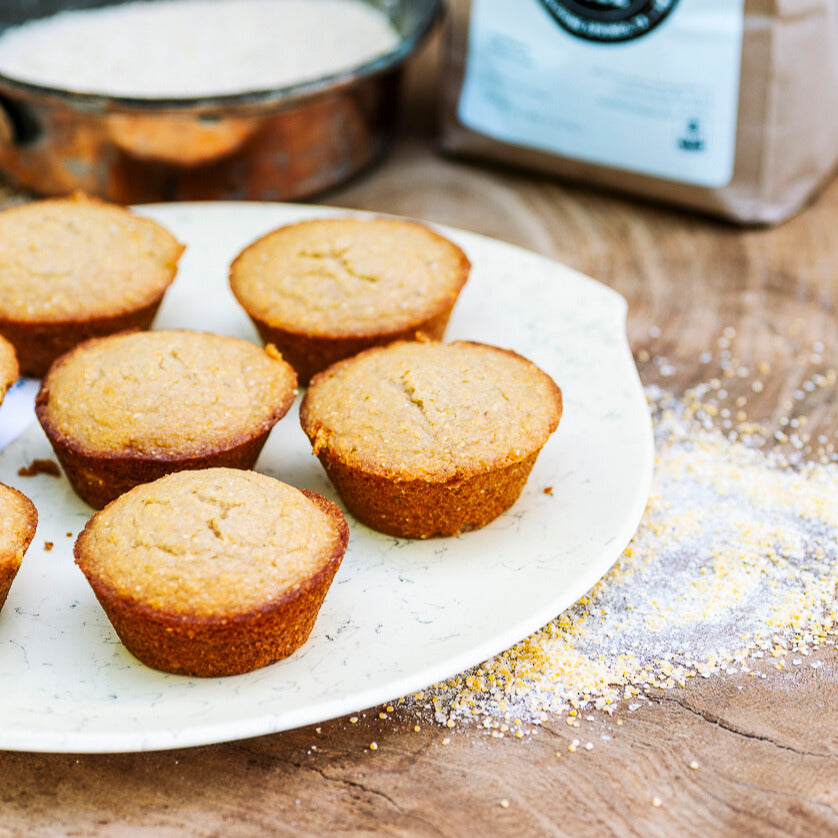 Melt in your mouth corn muffins using our organic All-Purpose flour, organic stone ground Cornmeal and Polenta. Perfect to pair with your next batch of chili or stew for those chilly fall days ahead!