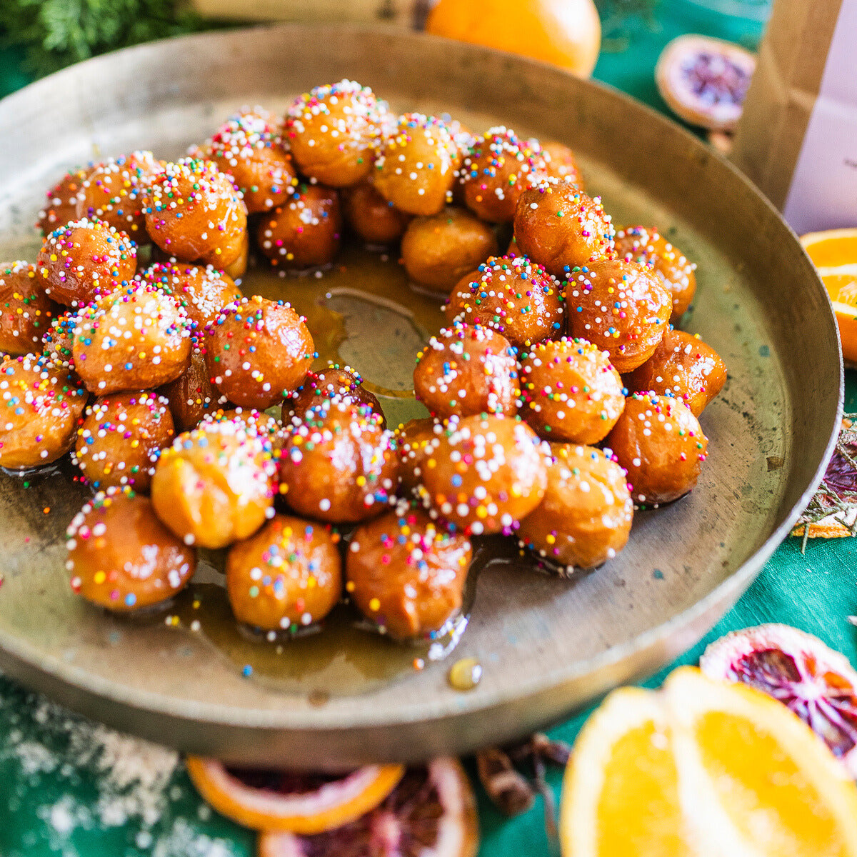 Struffoli is an Italian holiday staple to enjoy this season! These tiny round doughnuts are made with our organic Mediterranean flour and glazed with a citrusy honey syrup. Create this show stopper centerpiece for your holiday dessert table!