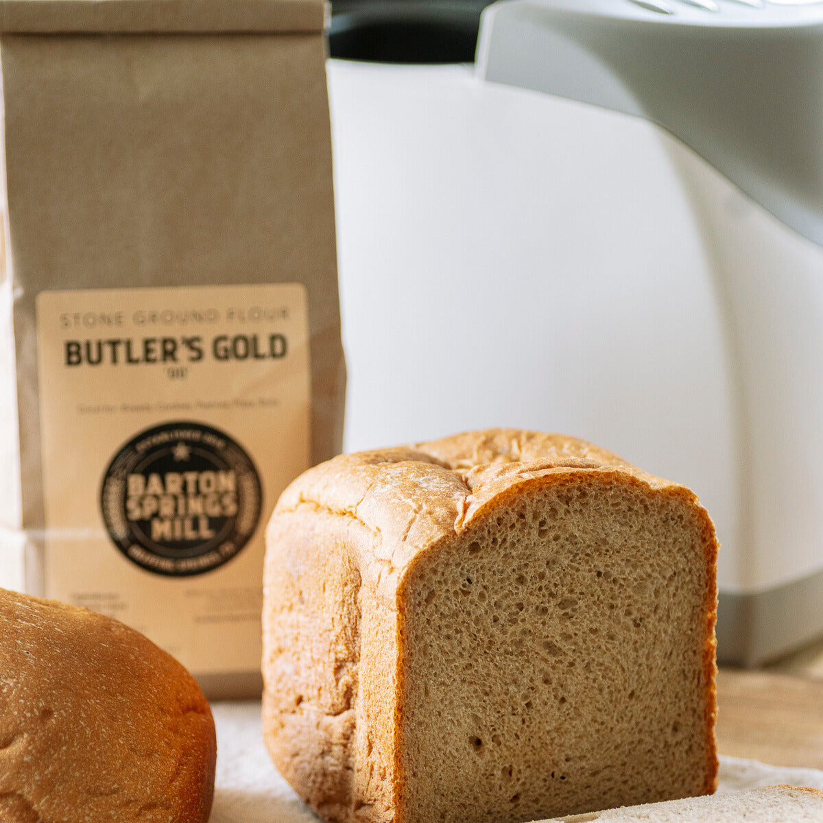 Limited on time to make a fresh loaf of bread? Our BSM Test Kitchen bread machine recipe featuring our organic Butler's Gold 00 flour. Create a sandwich loaf with just the click of a couple of buttons while letting the bread machine do the rest. Come home to the scent of freshly baked bread as if right out of the oven. This recipe provides both 1.5lb and 2lb loaf sizes!