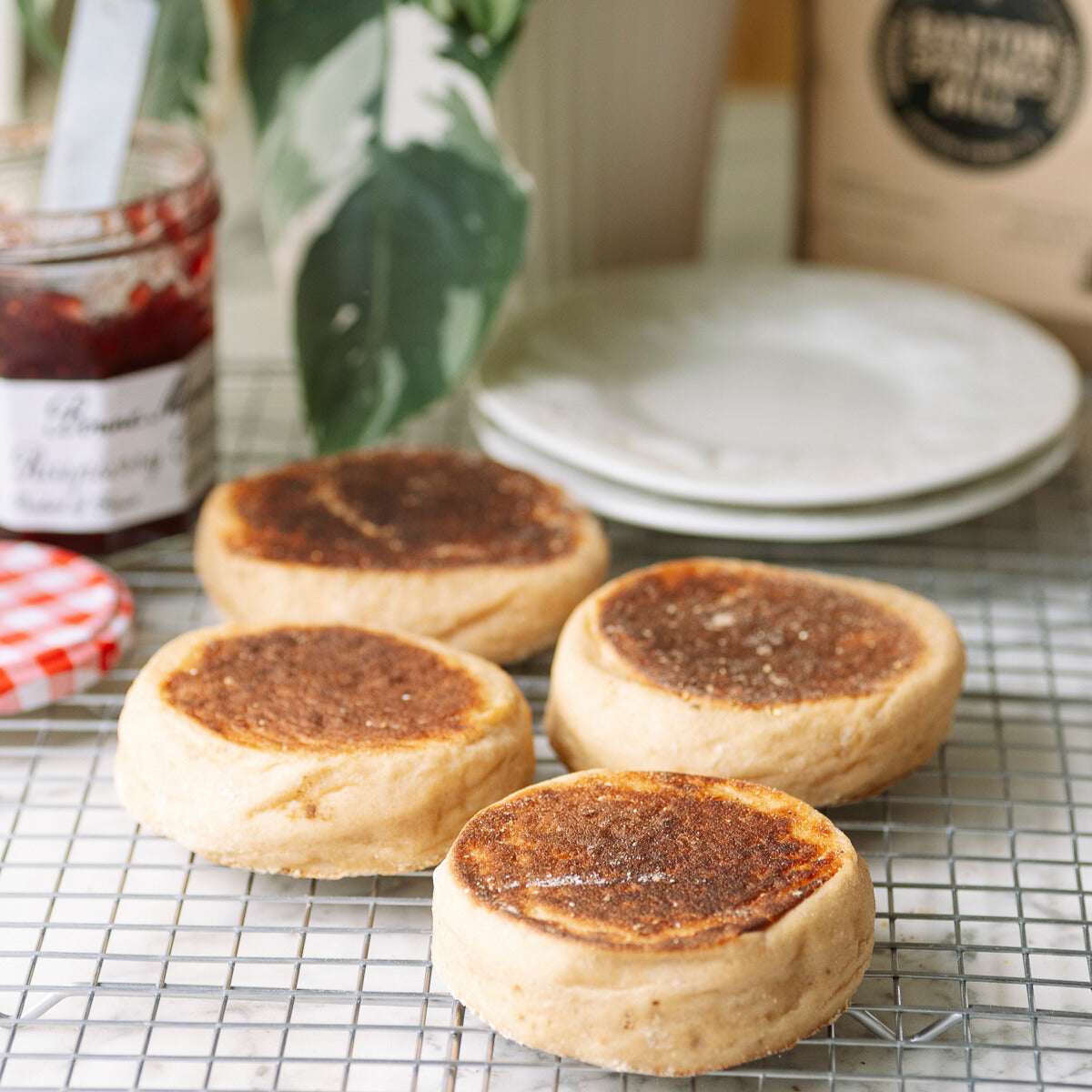 English muffins using our organic Rouge De Bordeaux 00 and Stardust whole wheat makes one great driver for a slather of butter & jam. Create sandwiches ahead of time for that "reheat and go" hearty and nutritious breakfast, or eggs Benedict on the weekend!